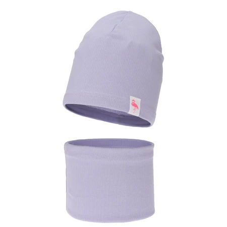 Komplet jesienny, wiosenny dla dziewczynki: czapka i komin, bawełniany, fioletowy Rumilla