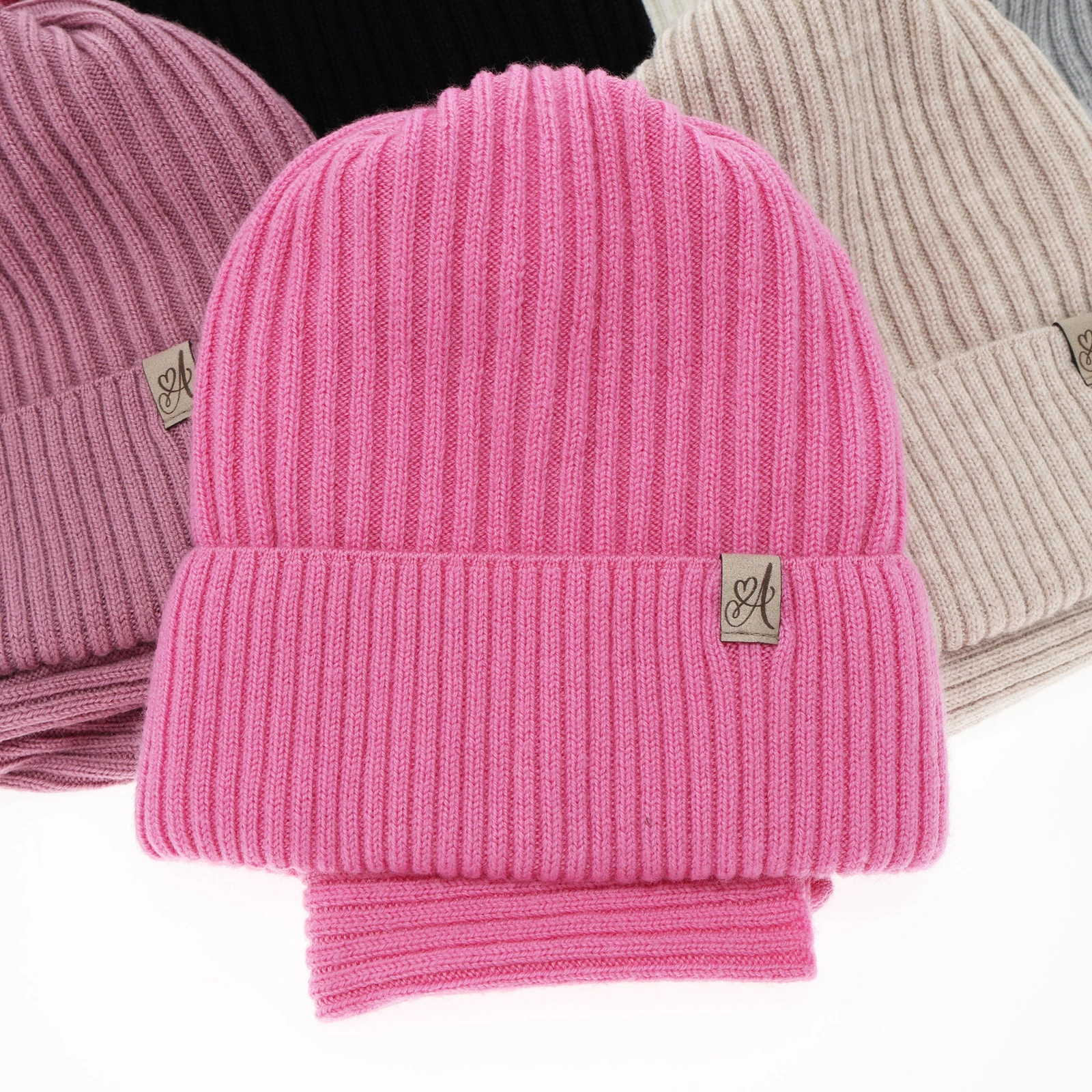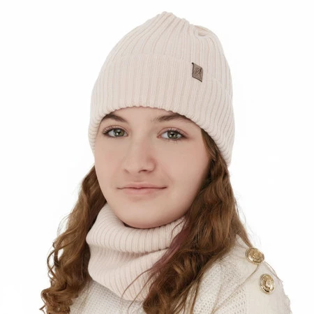 Czapka i komin dla dziewczynki, zimowy komplet, jasnoróżowy, 100% wełniany merino, Patricia
