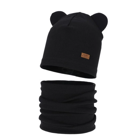 Czapka i komin dla chłopca, jesienny, wiosenny komplet, czarny Gregory