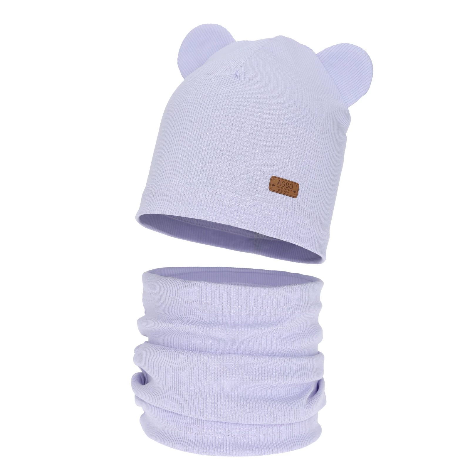 Komplet jesienny, wiosenny dla dziewczynki: czapka i komin, bawełniany, fioletowy Georgea