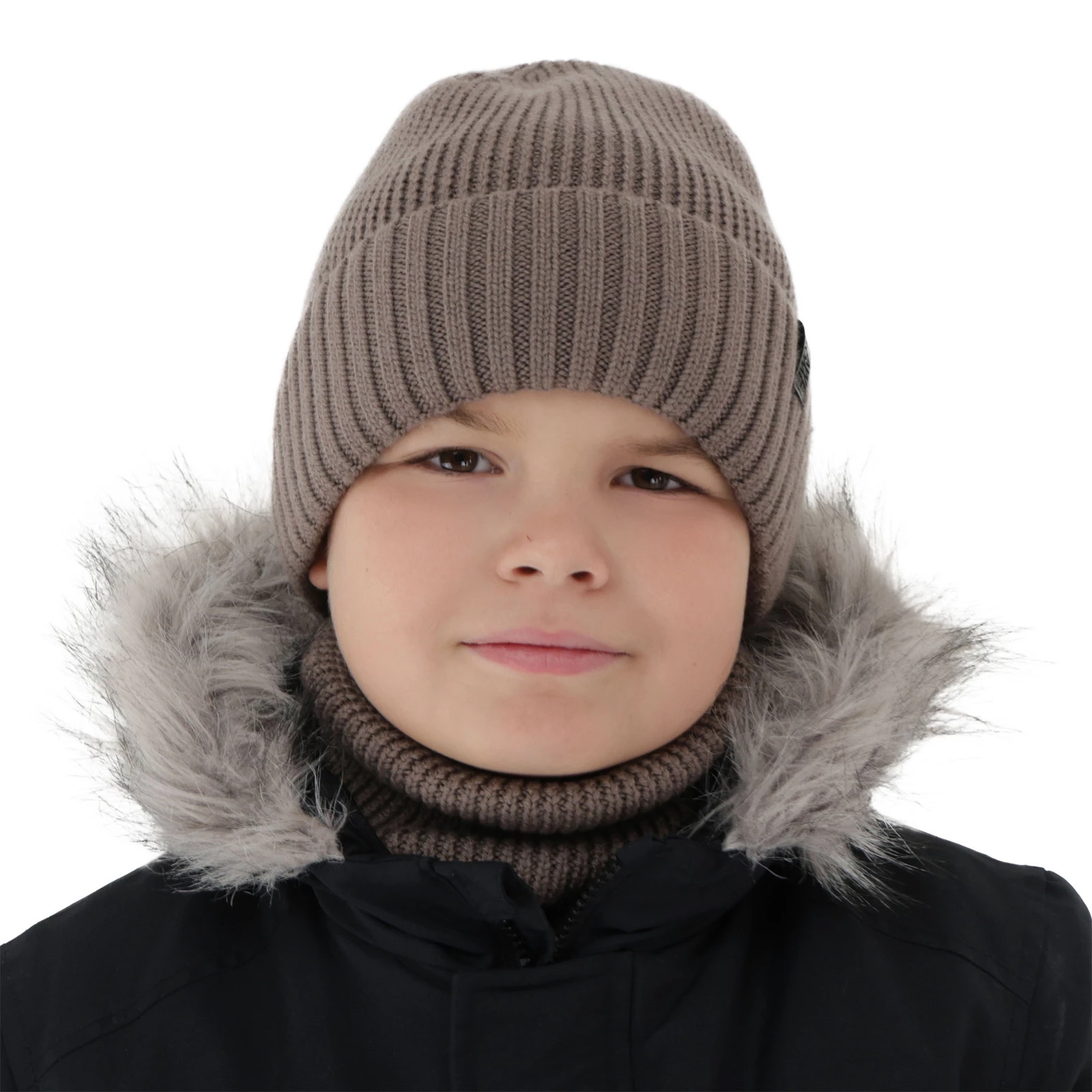 Czapka i komin dla chłopca, zimowy komplet, 100% wełniany merino, z podszyciem z wełny merino, brązowy Harbin