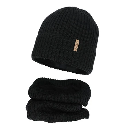 Czapka i komin podszyty bawełną dla dziewczynki zimowy komplet, czarny, z wełną merino, Odette