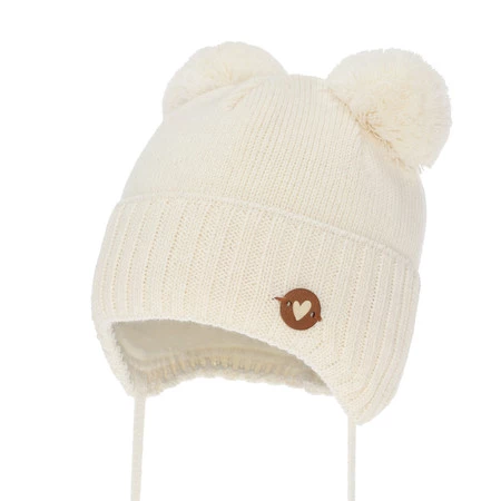 Czapka zimowa dla dziewczynki, kremowa, wiązana, z wełną merino Mesyna