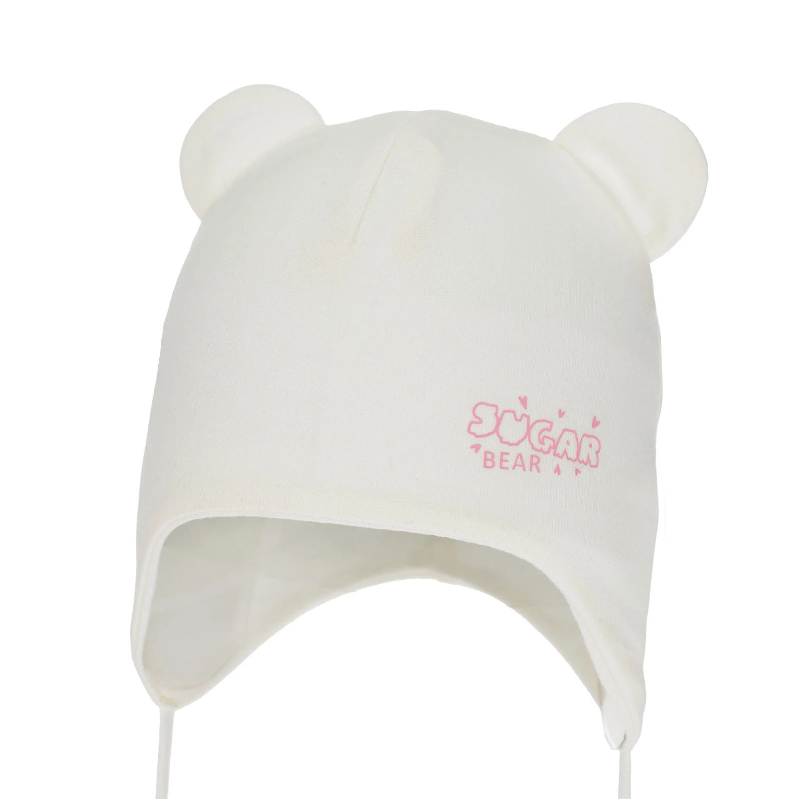Czapka dla dziewczynki jesienna, wiosenna, kremowa, bawełniana, wiązana Kelda