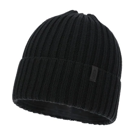 Czapka zimowa męska, czarna, z wełną merino, Tyrol