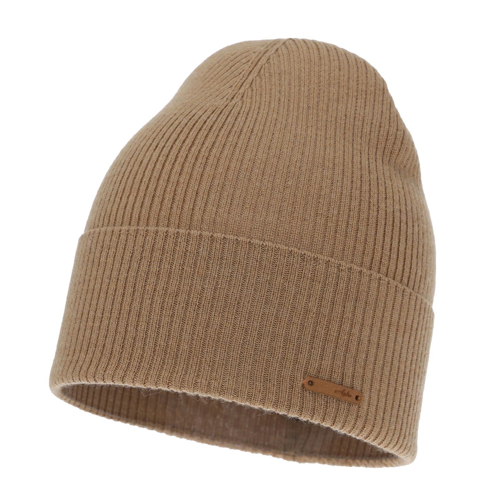 Czapka jesienna, zimowa damska, camel, 100% wełniana merino, Flerra