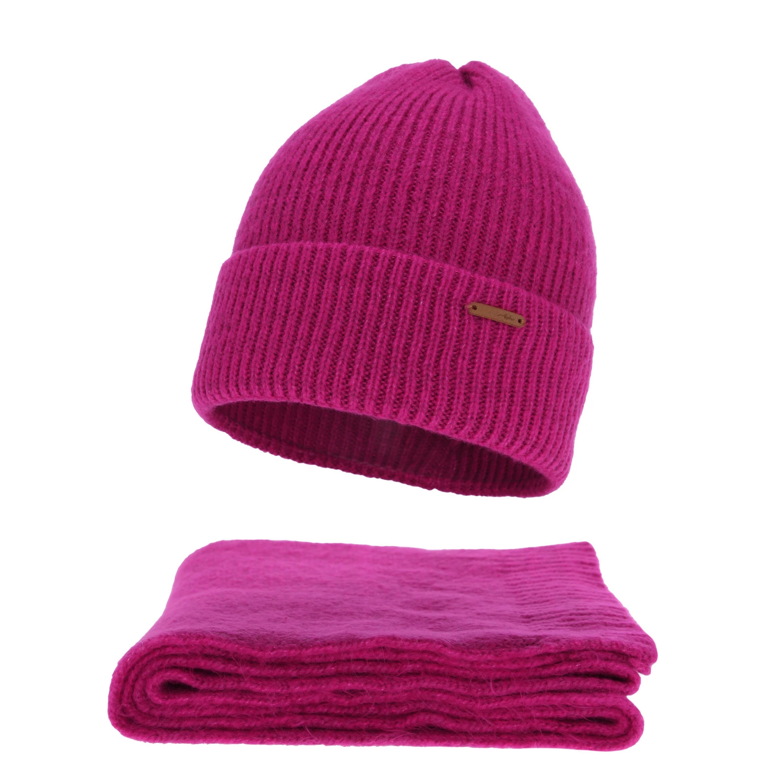 Czapka i szalik damski, zimowy komplet, amarantowy, z wełną merino, Seala