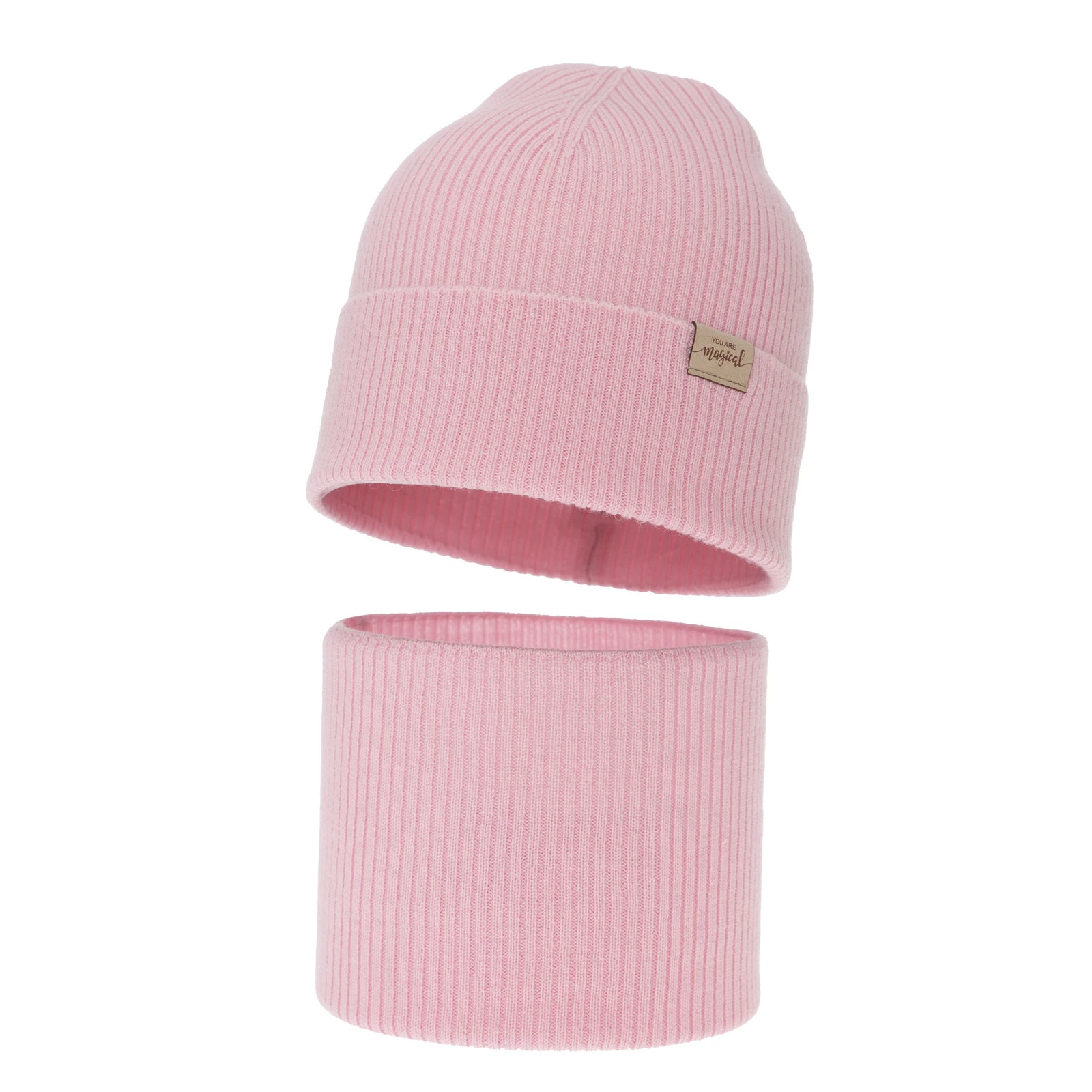 Czapka i komin dla dziewczynki jesienny, wiosenny komplet, różowy, 100% wełniany merino Magenta