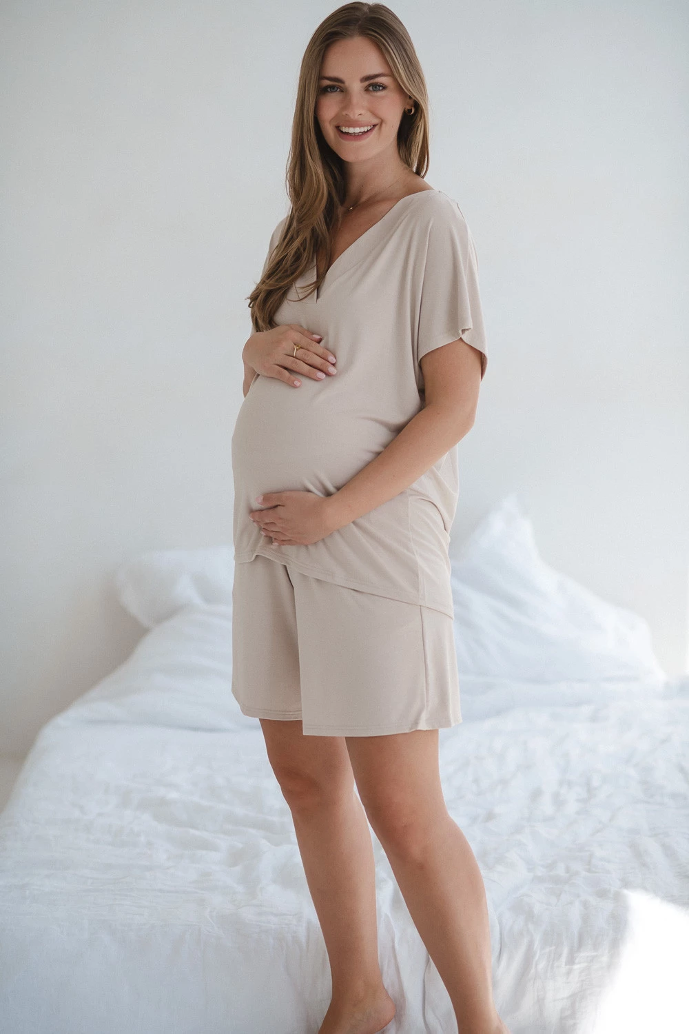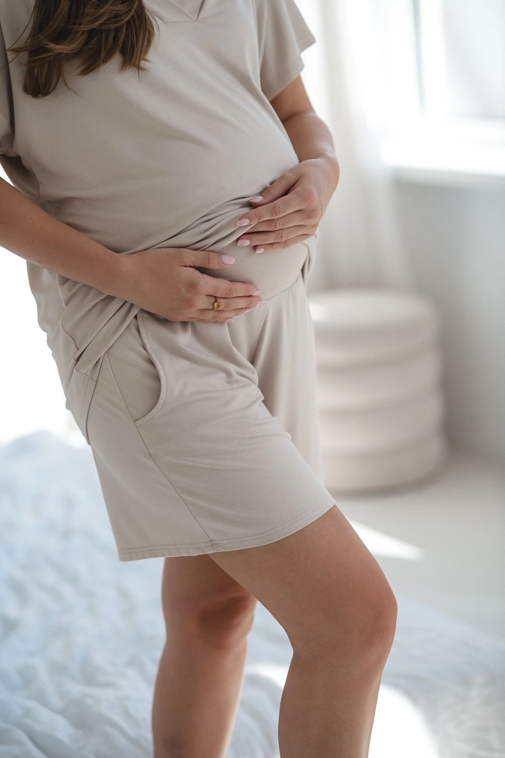 Bambusowe krótkie spodnie od piżamy ciążowej Moon jasny beż