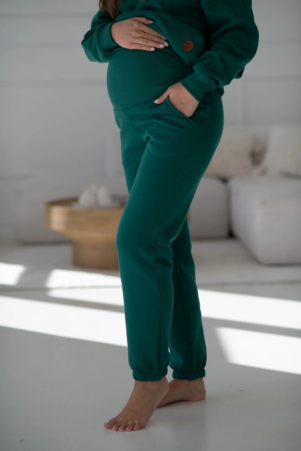 Grube dresowe spodnie ciążowe Motherhood butelkowa zieleń