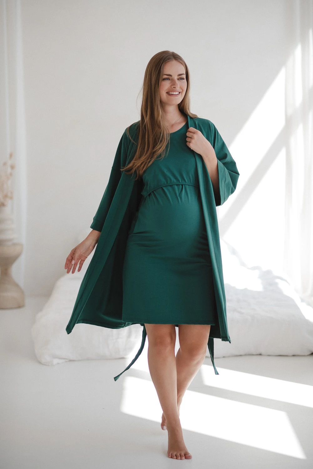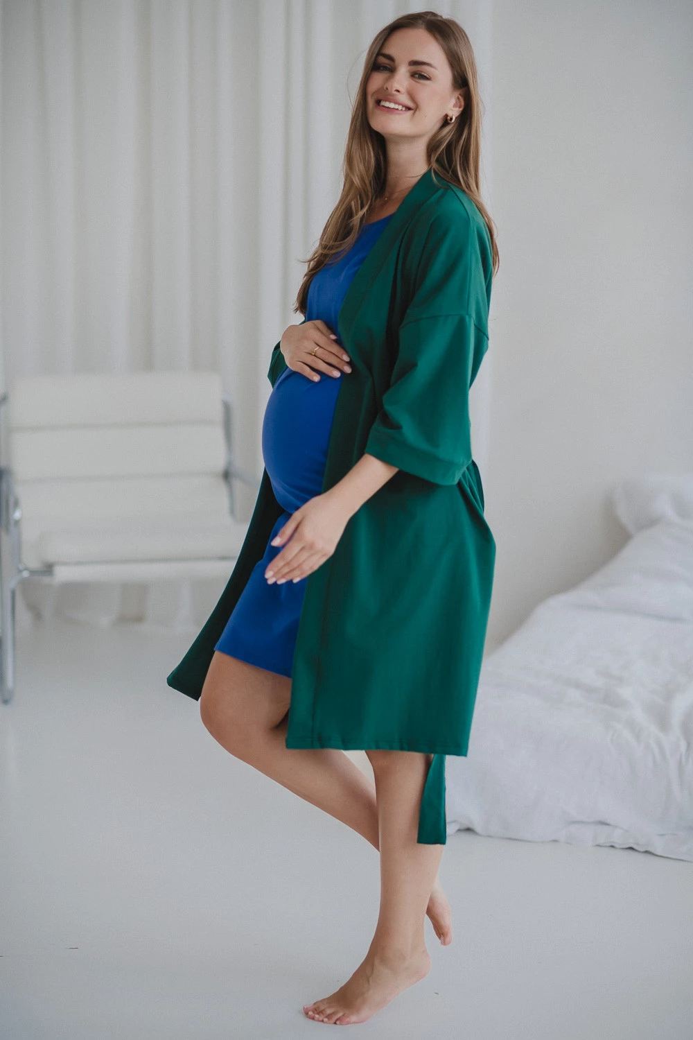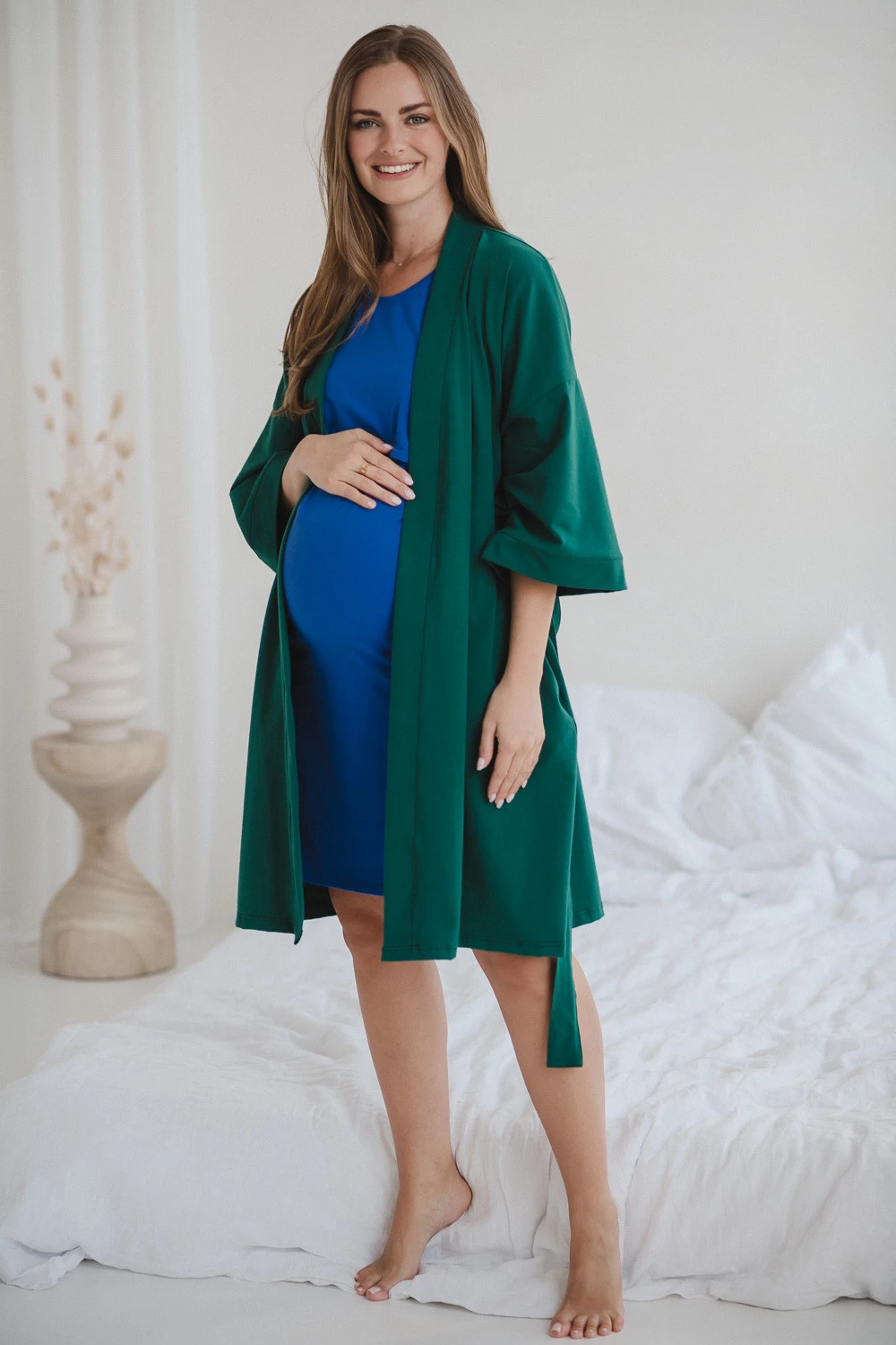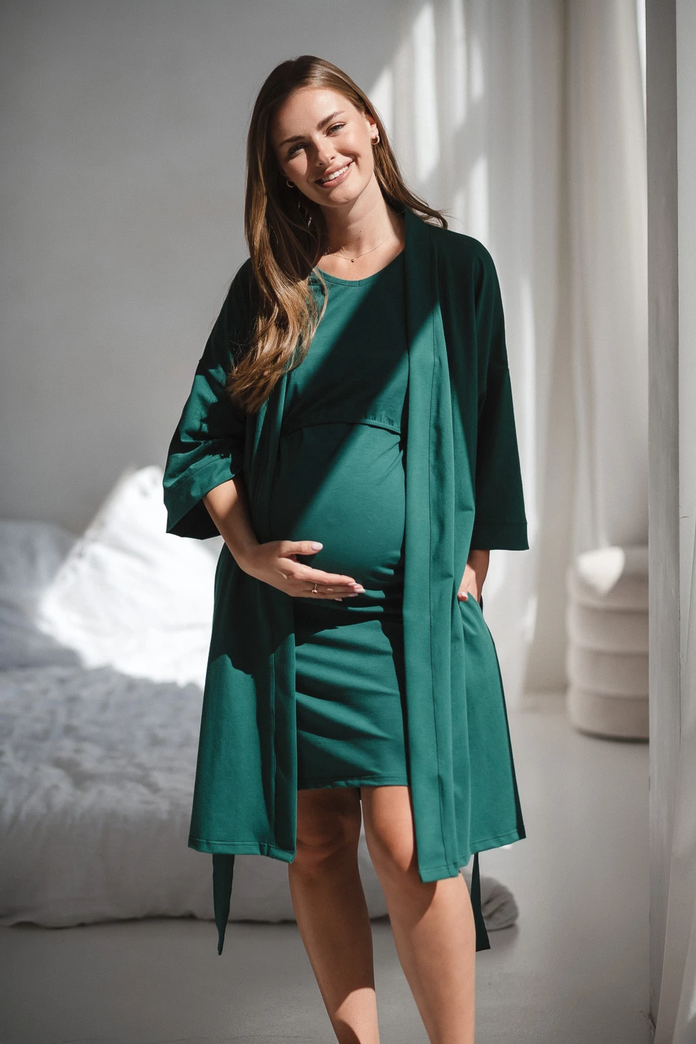 Szlafrok ciążowy z bawełny butelkowa zieleń