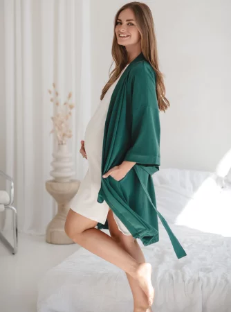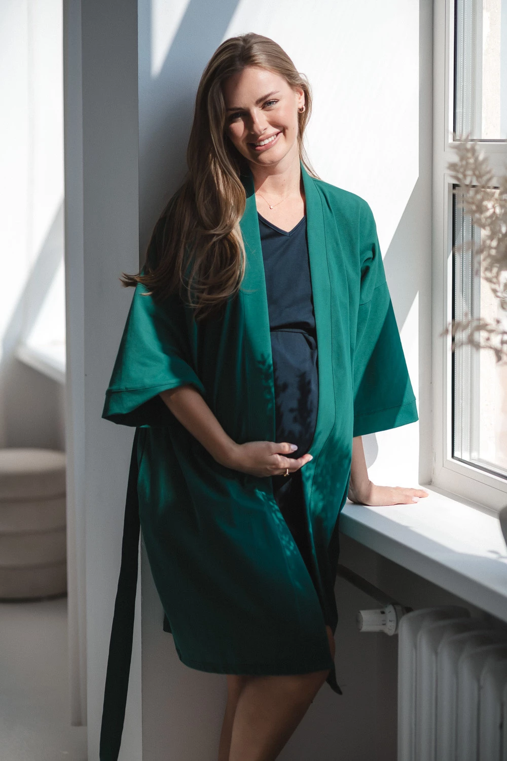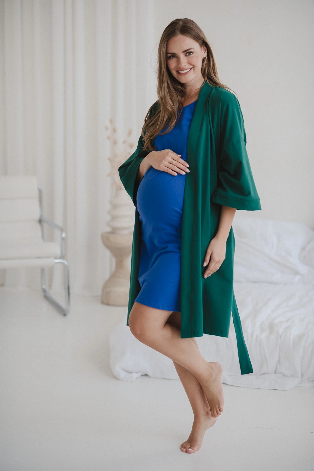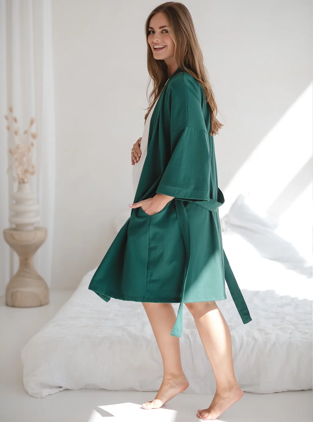 Szlafrok ciążowy z bawełny butelkowa zieleń