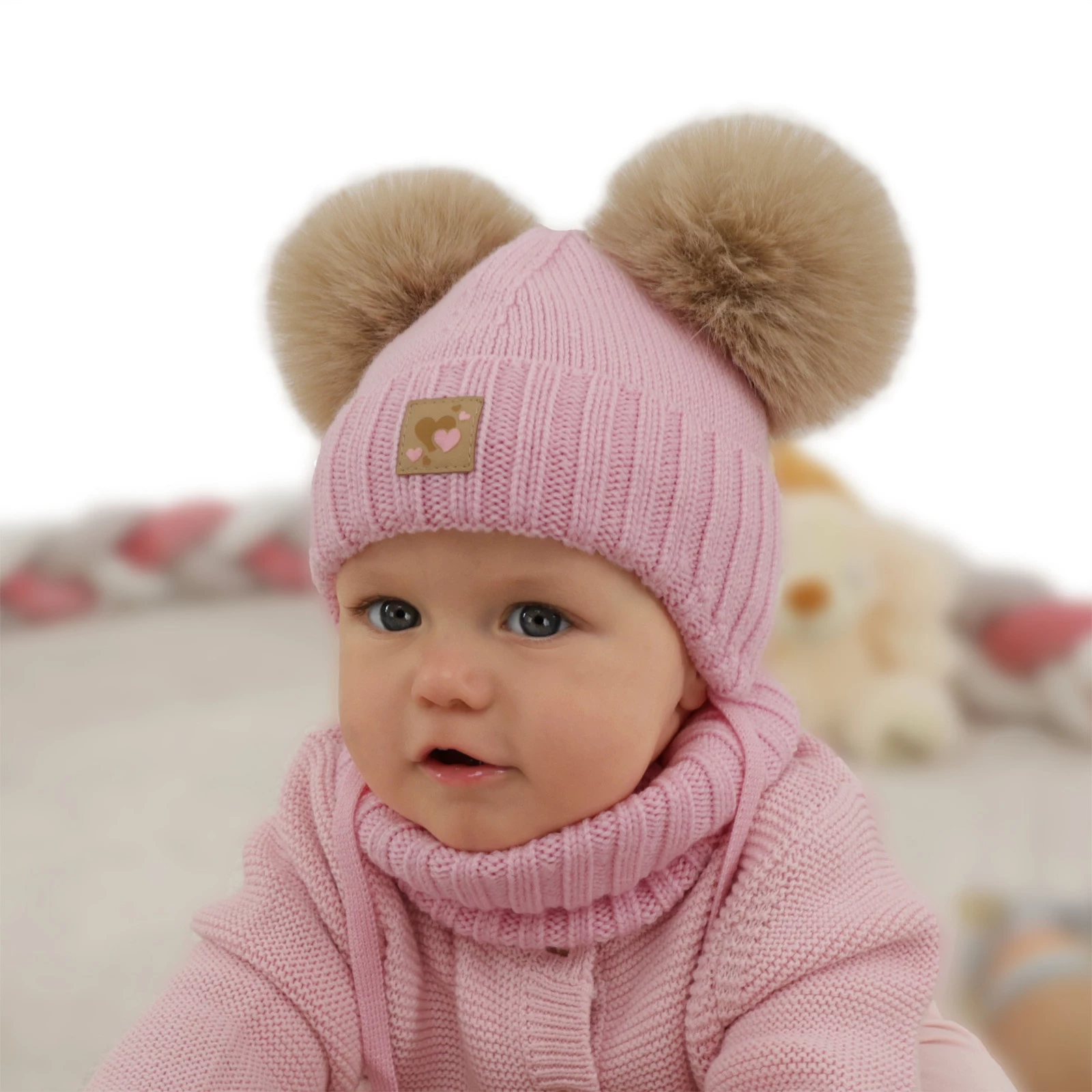 Czapka została dodatkowo podszyta ciepłym polarem wełnianym, co gwarantuje wyjątkową ochronę przed zimnem. Dwa urocze pompony z ekofutra dodają dziewczęcego uroku, a praktyczne troki pozwalają na idealne dopasowanie do obwodu głowy. Elegancka ozdobna naszywka stanowi stylowy akcent całego kompletu. Komin zaprojowany został tak, aby zapewnić wygodę noszenia i doskonałą ochronę szyi przed chłodem. Dzięki wysokiej jakości wełnie merino komplet jest nie tylko ciepły, ale także oddychający, co zapewnia komfort podczas aktywności na świeżym powietrzu. Ten zimowy komplet to doskonały wybór dla rodziców ceniących naturalne materiały i funkcjonalny design, który łączy w sobie elegancję z praktycznością codziennego użytkowania.