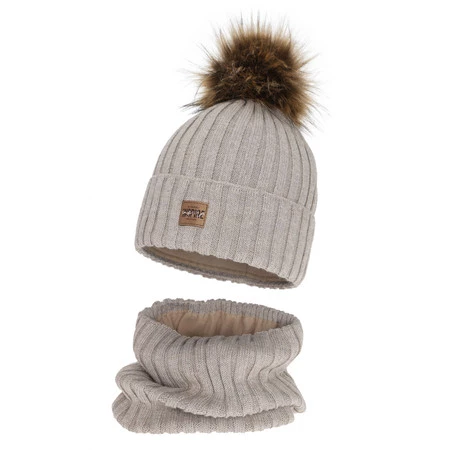 Komin został starannie podszyty miękkim polarem, który stanowi dodatkową barierę przed zimnem i wiatrem. Ta praktyczna warstwa zwiększa komfort noszenia i chroni delikatną skórę szyi dziecka. Puszysty pompon z ekofutra nadaje całości uroczego charakteru, a stylowa naszywka z ekoskórki podkreśla wyjątkowość tego zimowego kompletu. Modny ścieg w prążki to klasyczny element, który nigdy nie wychodzi z mody.