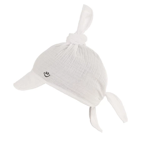 Chusta z daszkiem muślinowa dla chłopca jesienna, wiosenna, biała Kobo