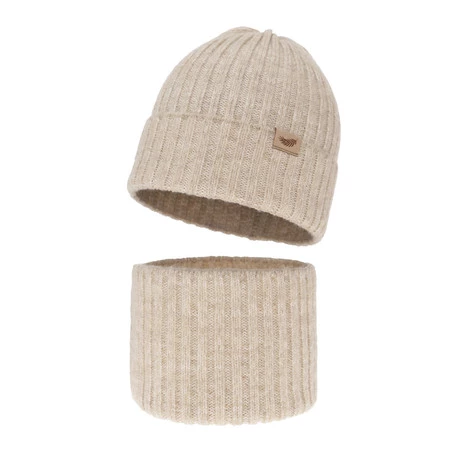Czapka i komin dla dziewczynki zimowy komplet, beżowy, z wełną merino Karmina