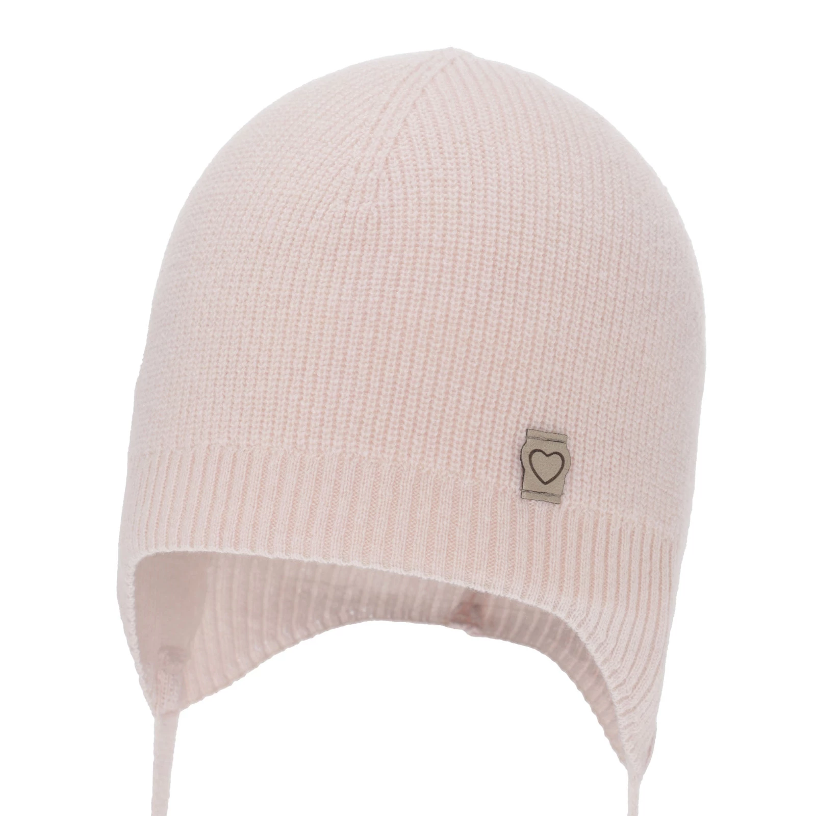 Czapka jesienna, wiosenna dla dziewczynki, różowa, wełna merino z kaszmirem, wiązana Orida