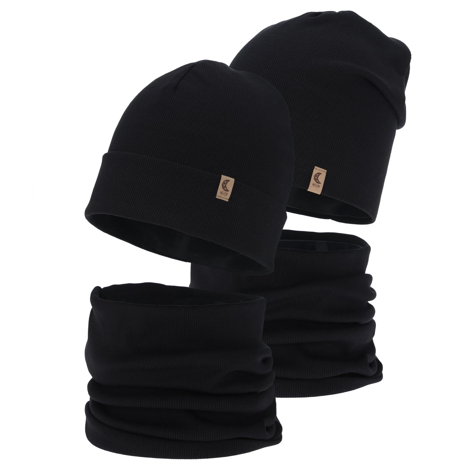 Czapka i komin dla dziewczynki jesienny, wiosenny komplet, bawełniany, czarny Bravura