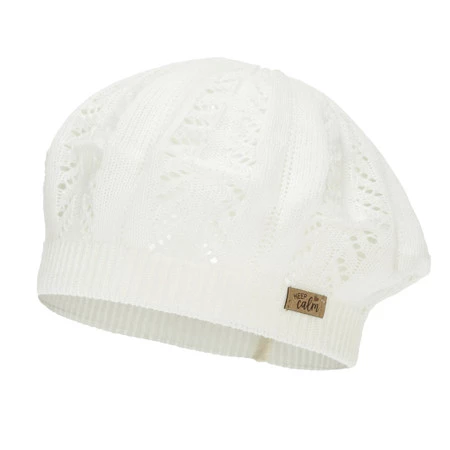 Charakterystyczny ażurkowy ścieg nadaje beretowi wyjątkowego uroku, tworząc delikatny, ażurowy wzór, który przyciąga wzrok. Nowoczesny materiał zapewnia oптимальną wentylację, dzięki czemu główka dziecka nie przegrzewa się podczas aktywności. Niewielka ozdobna naszywka stanowi subtelny akcent, podkreślając modny charakter całego modelu. Lekka konstrukcja bez podszycia gwarantuje komfort noszenia przez cały dzień.