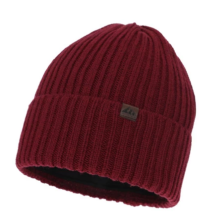 Czapka zimowa męska, bordowa, z wełną merino Huno