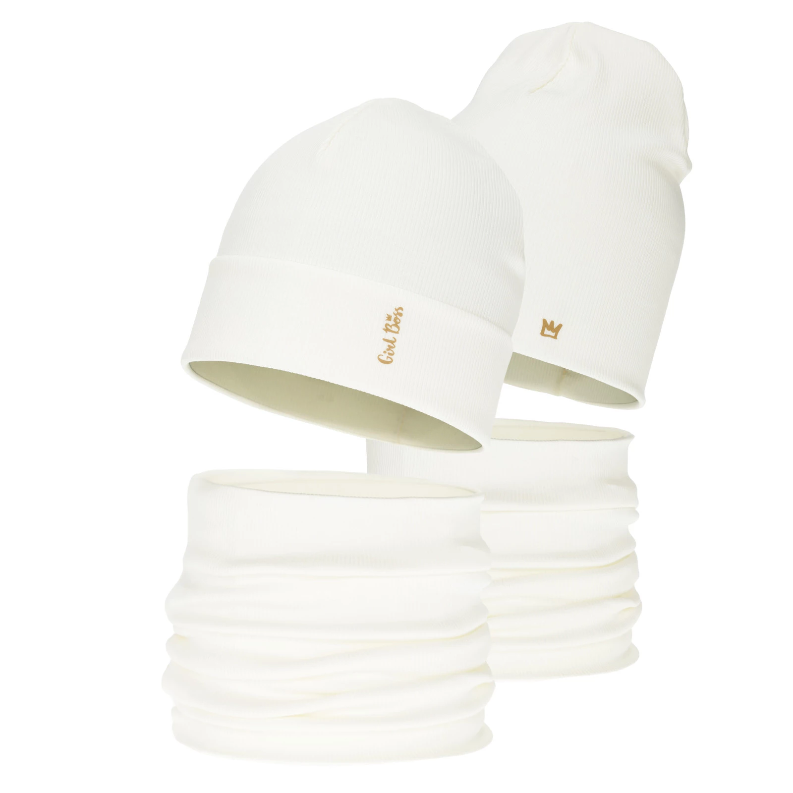 Czapka i komin dla dziewczynki jesienny, wiosenny komplet, bawełniany, kremowy Carina
