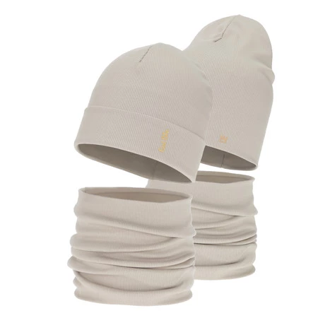 Czapka i komin dla dziewczynki jesienny, wiosenny komplet, bawełniany, beżowy Carina