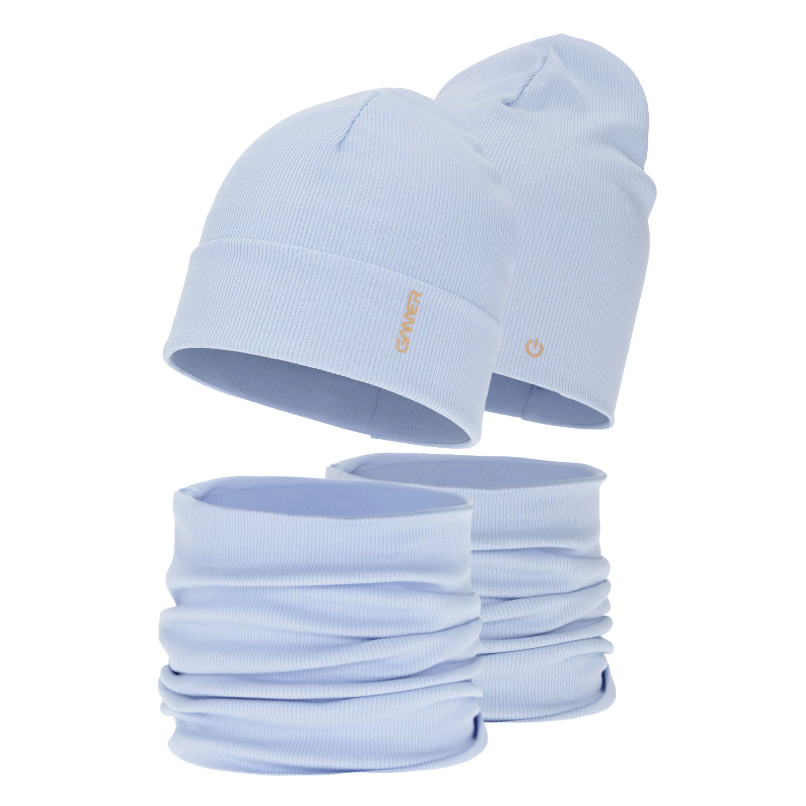 Czapka i komin dla chłopca, jesienny, wiosenny komplet, bawełniany, błękitny Desider