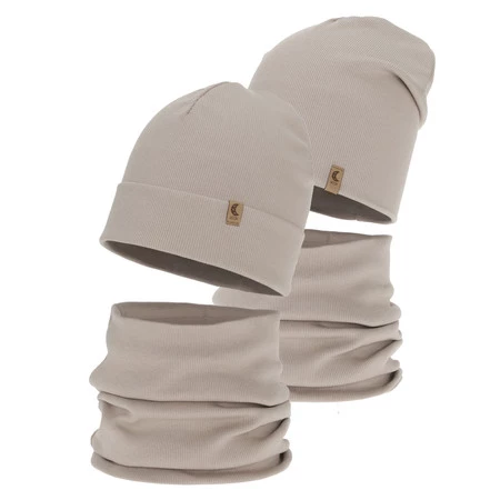 Czapka i komin dla dziewczynki jesienny, wiosenny komplet, bawełniany, beżowy Bravura
