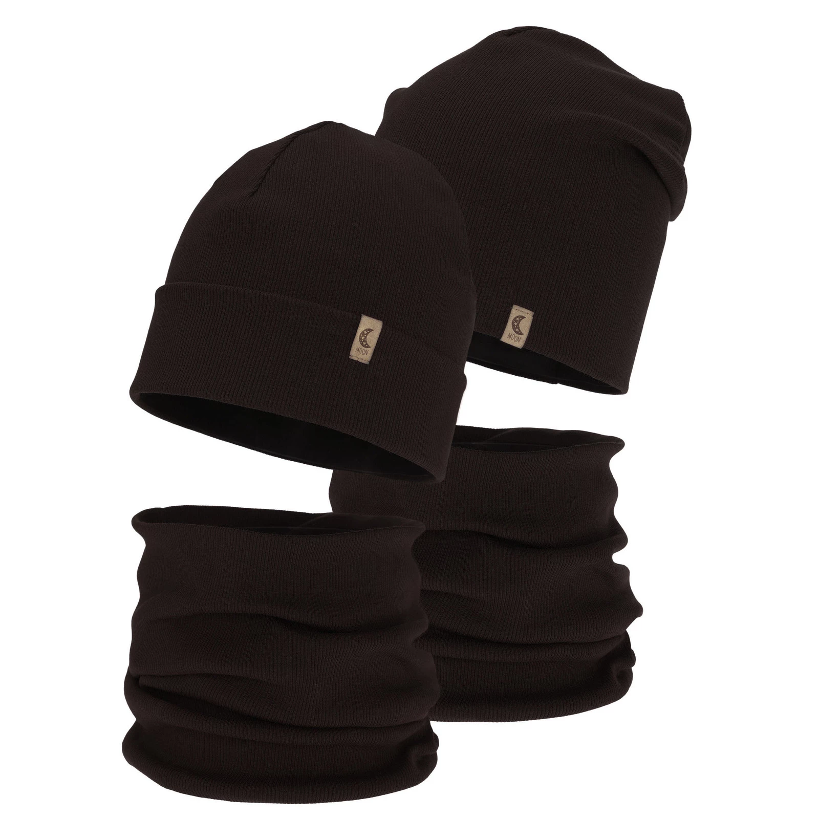 Czapka i komin dla dziewczynki jesienny, wiosenny komplet, bawełniany, ciemnobrązowy Bravura