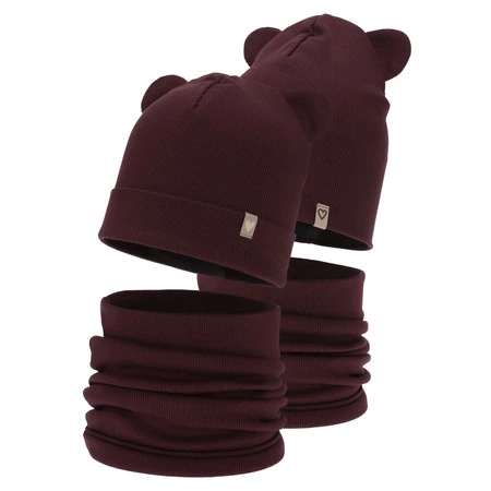 Czapka i komin dla dziewczynki jesienny, wiosenny komplet, bawełniany, burgundowy Luminia