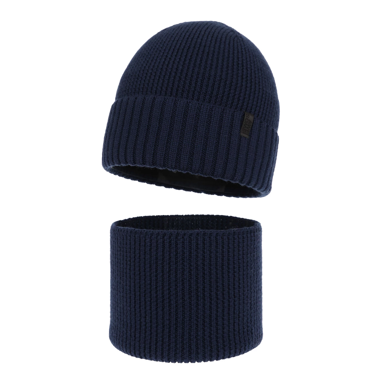 Czapka i komin dla chłopca, zimowy komplet, 100% wełniany merino, z podszyciem z wełny merino, granatowy Harbin