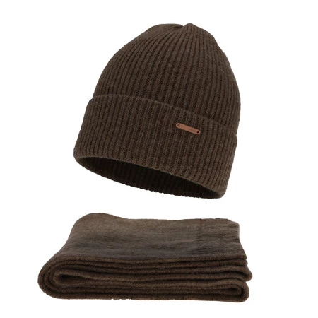 Czapka i szalik damski, zimowy komplet, brązowy, z wełną merino, Seala