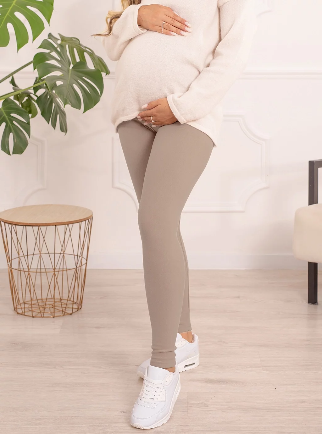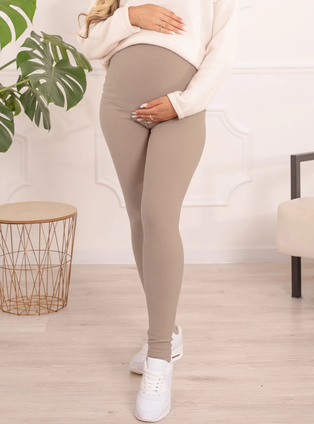 OCIEPLANE LEGGINSY CIĄŻOWE FORMOMMY- KOLOR JASNY BEŻ