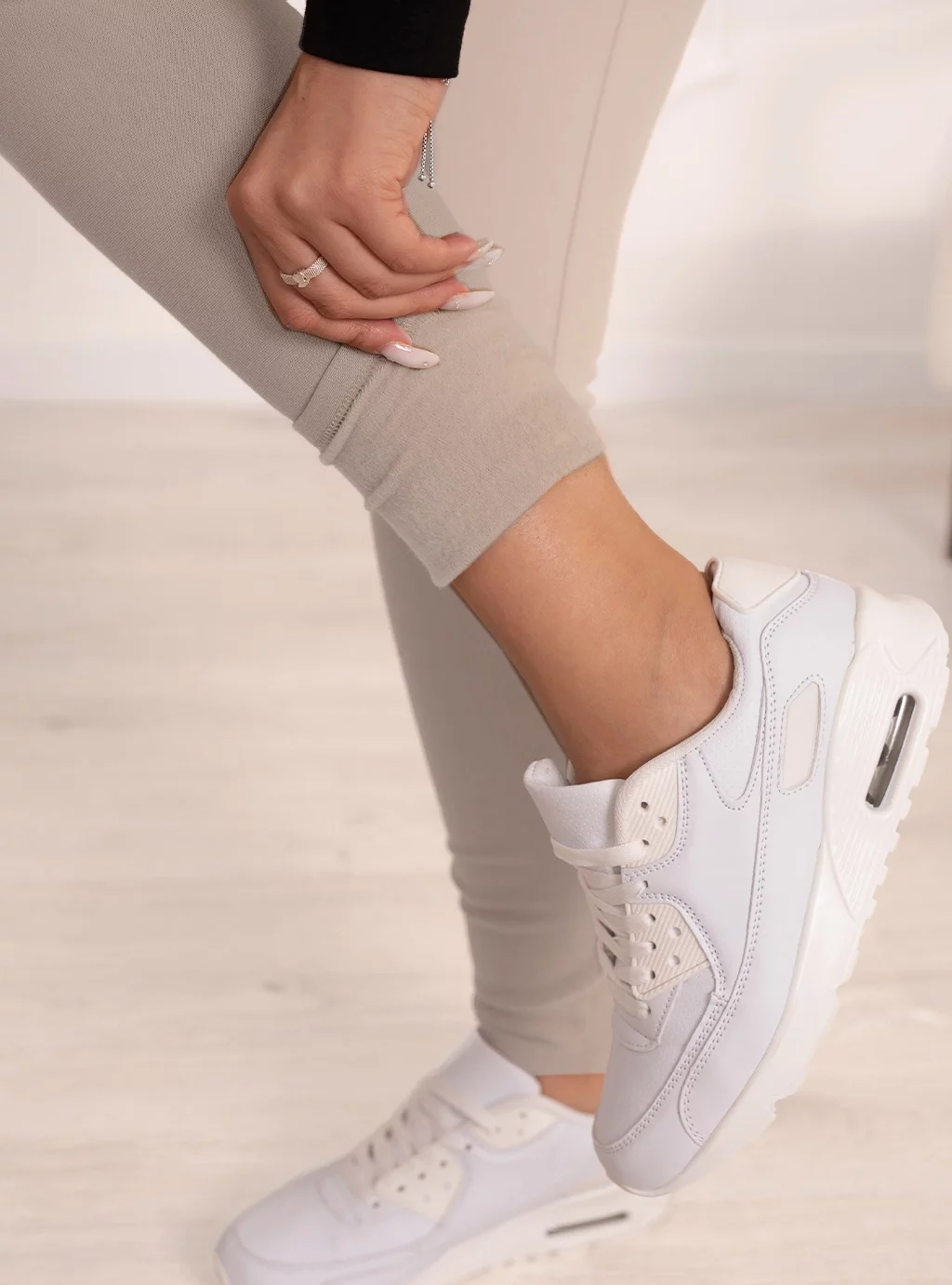 Oprócz komfortu i ciepła, ocieplane leginsy ciążowe Formommy są również niezwykle stylowe. Kolor jasny beż może być sparowany z czernią, butelkową zielenią i innym odcieniem beżu, aby uzyskać szykowny i stylowy look.