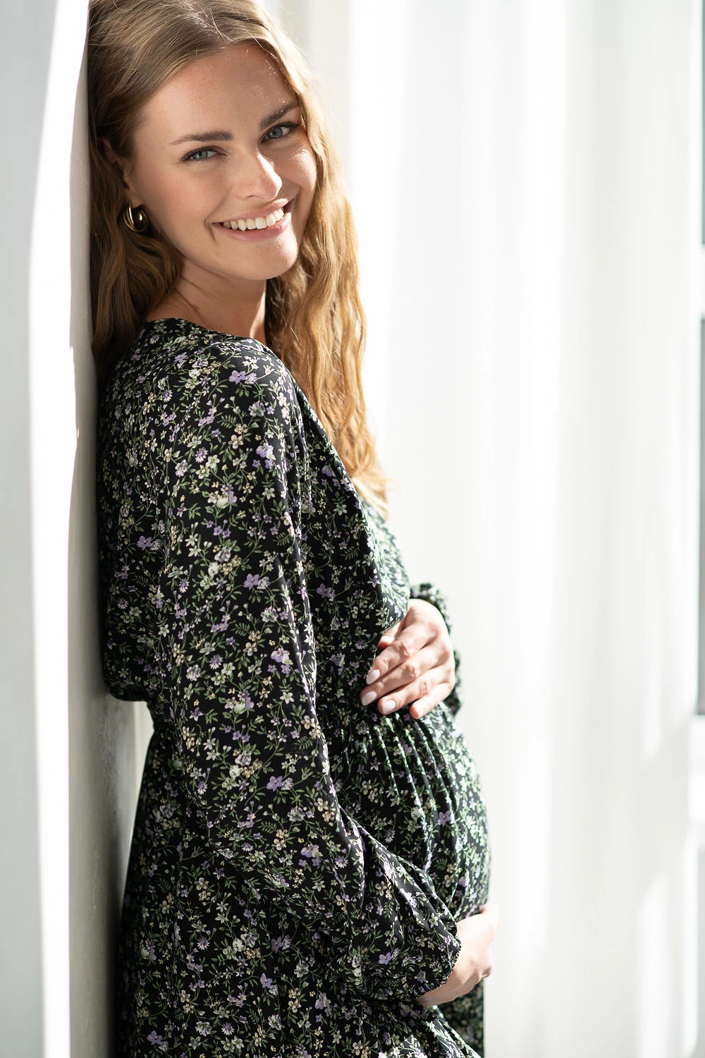 To elegancka sukienka ciążowa na chrzciny, święta, rodzinne uroczystości i sesje zdjęciowe. Równie dobrze sprawdzi się w wersji casualowej – z trampkami, balerinami lub botkami.