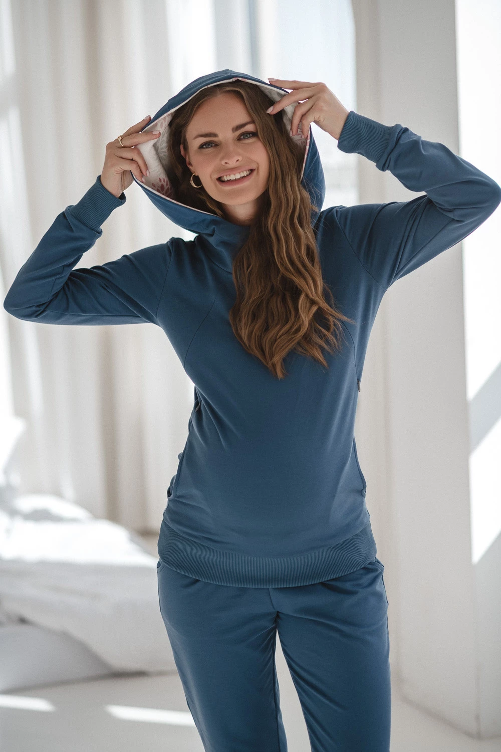 Luźny, ale dobrze skrojony fason oraz elastyczna dzianina bawełniana sprawiają, że bluza doskonale dopasowuje się do ciążowego brzuszka, nie dodając zbędnej objętości. Po porodzie zachowuje swój kształt, więc możesz nadal cieszyć się modnym wyglądem – bez efektu „workowatego” ubrania. To idealna bluza na czas ciąży i połogu, która łączy komfort i nowoczesny styl.