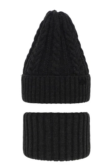 Czapka i komin podszyty bawełną dla chłopca zimowy komplet, szary, z wełną merino, Colton