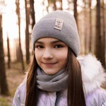 Komplet jesienny, wiosenny dla dziewczynki: czapka i komin, bawełniany, szary Georgea