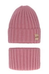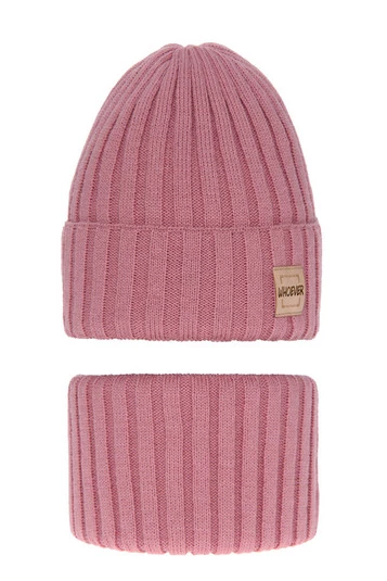 Czapka i komin dla dziewczynki, zimowy komplet, różowy, 100% wełniany merino, Patricia