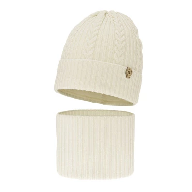 Czapka i komin dla dziewczynki jesienny, wiosenny komplet, z bawełną, beżowy Amarilla