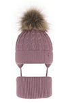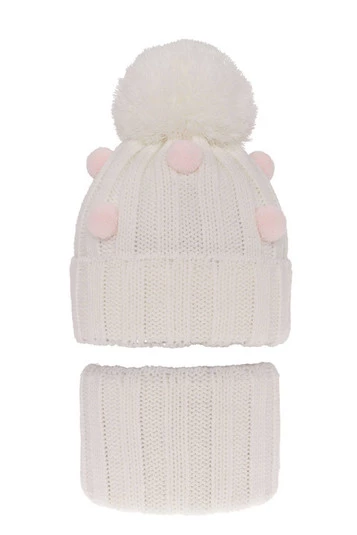 Czapka i komin dla dziewczynki zimowy komplet, różowy, z dwoma pomponami, wiązany Bettina