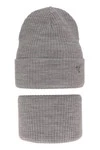 Czapka i komin dla dziewczynki zimowy komplet, szary, wiązany, 100% wełniany merino, z dwoma pomponami Silvia